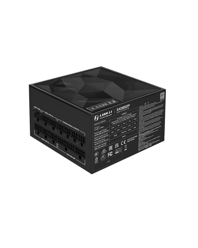 Lian Li SX 850W Full Modular ATX Form Factor Power Supply with 12V-2x6 Cable - ATX 3.1 & PCIE 5.1 Compliant, Cybenetics Platinum Efficiency - 100 Percent Japanese 105C Capacitors - Black (SX0850P.B)